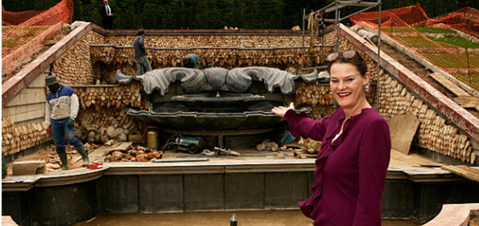 Le château de Versailles doit à son action, à sa générosité et à celle des Amis qu’elle a su réunir au sein des American Friends of Versailles, la restitution du fameux bosquet des Trois Fontaines et de nombreuses autres restaurations.