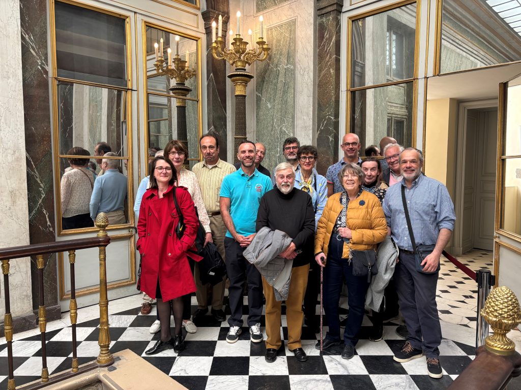 Après quatorze mois de travail, la restauration du salon de Diane touche à sa fin. Le vendredi 24 avril, plusieurs de nos donateurs et bienfaiteurs ont pu participer à une visite du chantier de restauration du salon de Diane, sous la conduite d’Élodie Vaysse, conservatrice du patrimoine au château de Versailles, chargée des peintures des XVIe et XVIIe siècles. Les participant ont ainsi pu profiter des riches explications de Madame Vaysse et assister au travail des ouvriers présents sur place pour réaliser des tests d’éclairage du plafond et des voûtes.