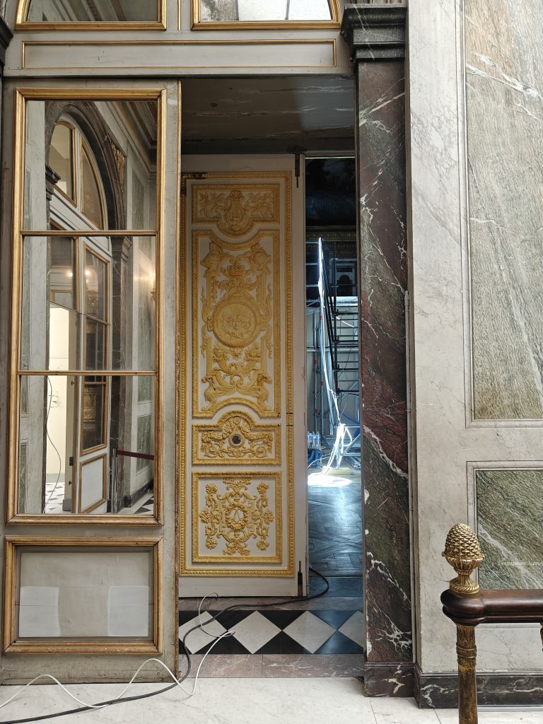 Cette restauration d’ampleur, sur le point de s’achever, s’inscrit dans la mission propre au Château de conservation et de valorisation des décors peints, témoignages remarquables du règne de Louis XIV.