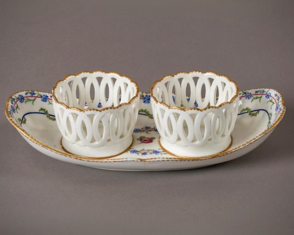 Les collections du Château de Versailles s’enrichissent d’un délicat porte-huilier en porcelaine tendre, récemment acquis grâce au don de Messieurs Jérôme Plouseau et Christophe Caramelle, par l’intermédiaire de la Société des Amis de Versailles. Désormais installé et visible dans le cabinet des porcelaines, cet objet raffiné témoigne de l’excellence des arts de la table à la cour à la fin du XVIIIᵉ siècle.