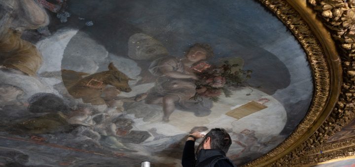 Le 24 avril 2926, plusieurs donateurs et bienfaiteurs ont eu la chance de participer à deux visites de chantier du Salon de Diane, dont la restauration touche à sa fin