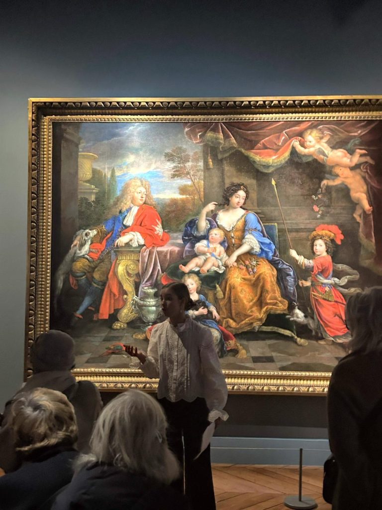 Parmi tous ces moments, ma toute première médiation à tour de rôle, en binôme avec Sarah Ben Meriem a été sans conteste le plus marquant. Nous avions la charge de la section « Père de roi », postées juste devant le splendide tableau de Pierre Mignard, La Famille du Grand Dauphin.