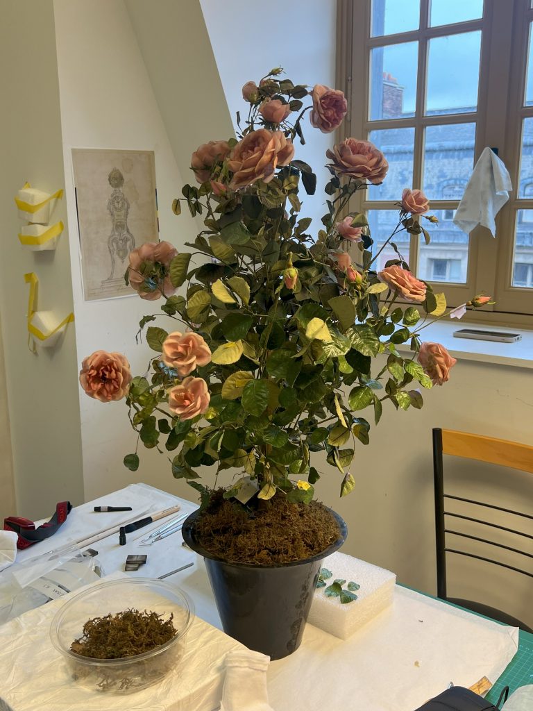 Nous avons ainsi découvert la minutie que requiert cette restauration : un patient dépoussiérage feuille par feuille, pétale par pétale, afin de redonner tout leur éclat à ces délicats bouquets.